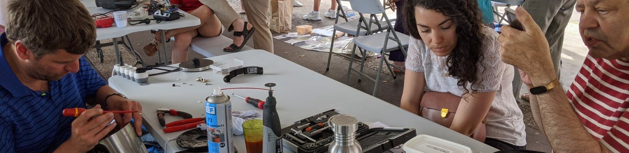 Vous apportez les objets (vêtements, meubles, appareils électriques et autres) en mauvais état que vous voudriez réparer, plutôt que de les jeter. Ceux qui n’ont rien à réparer peuvent prendre un café, un thé ou un jus de fruits préparé sur place, ou aider à réparer un objet appartenant à un autre.